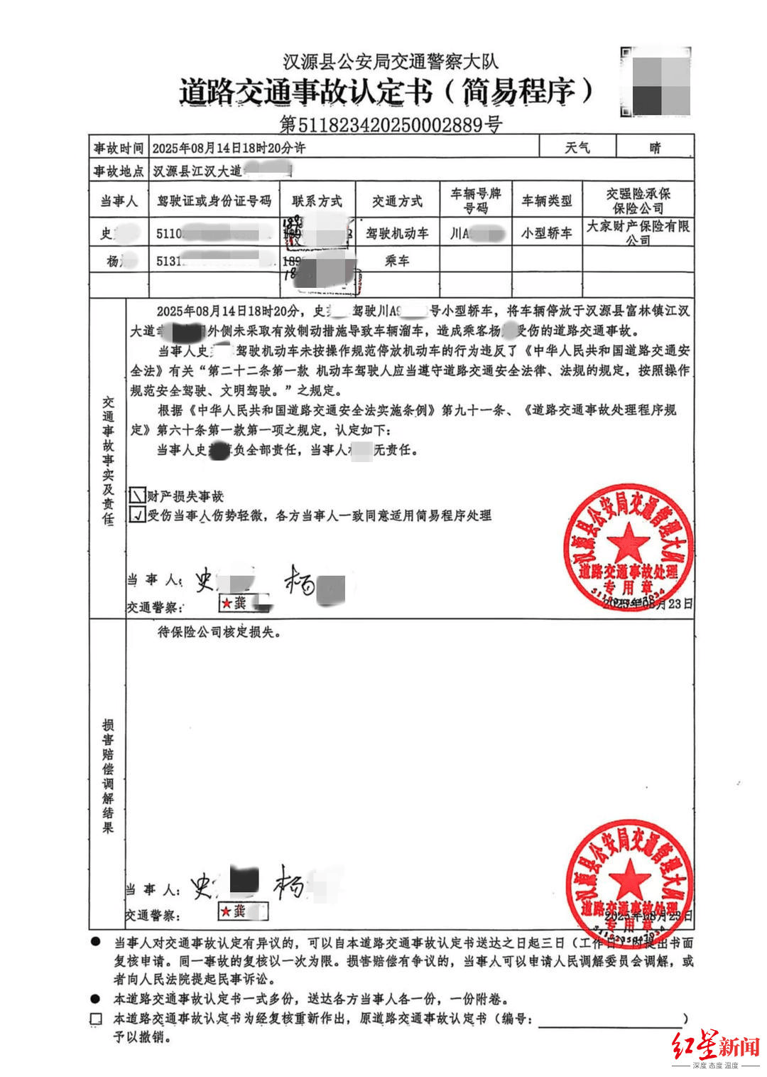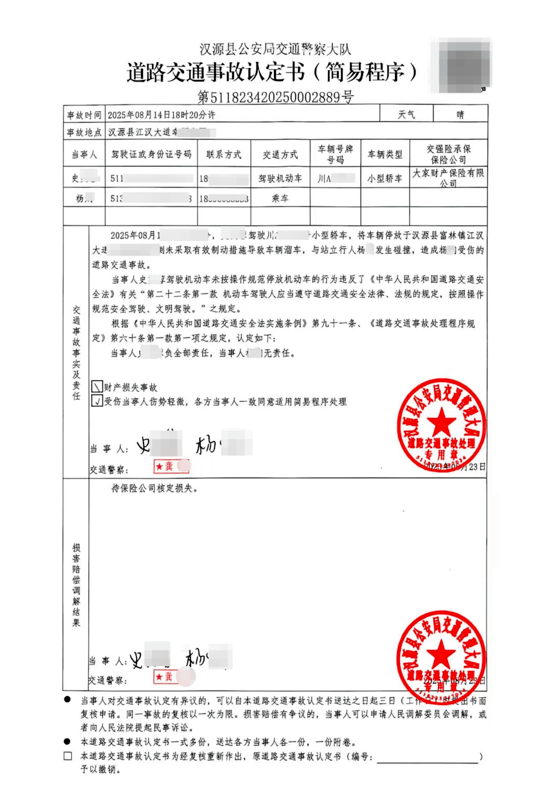 ▲第一份事故认定书