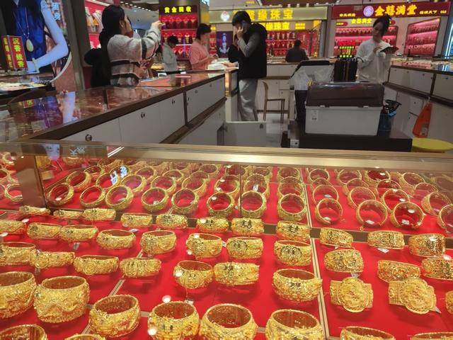 深圳水贝消费者在挑选金饰。周良成/摄