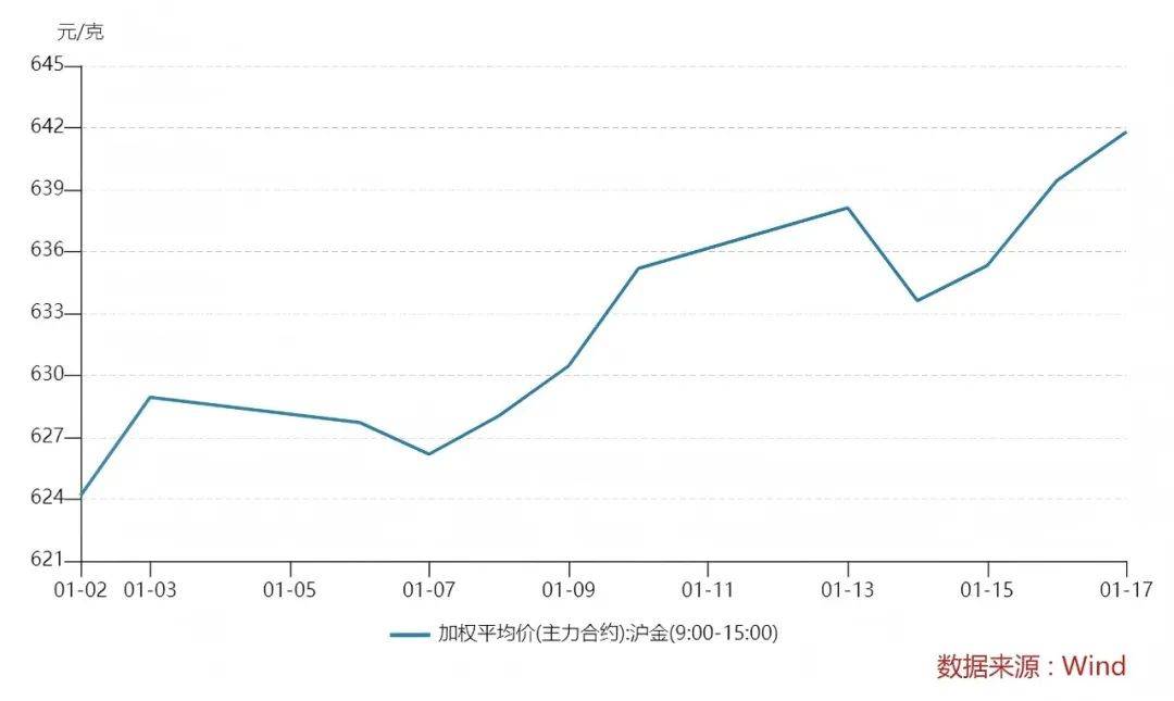 Wind数据显示,1月10日至17日,沪金主力合约在630元/克以上震荡,处于历史较高价格。