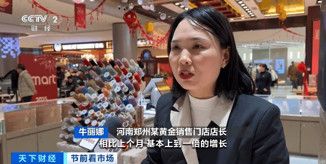 河南郑州某黄金销售门店店长 牛丽娜:卖得特别好。相比上个月,基本上有一倍的增长。