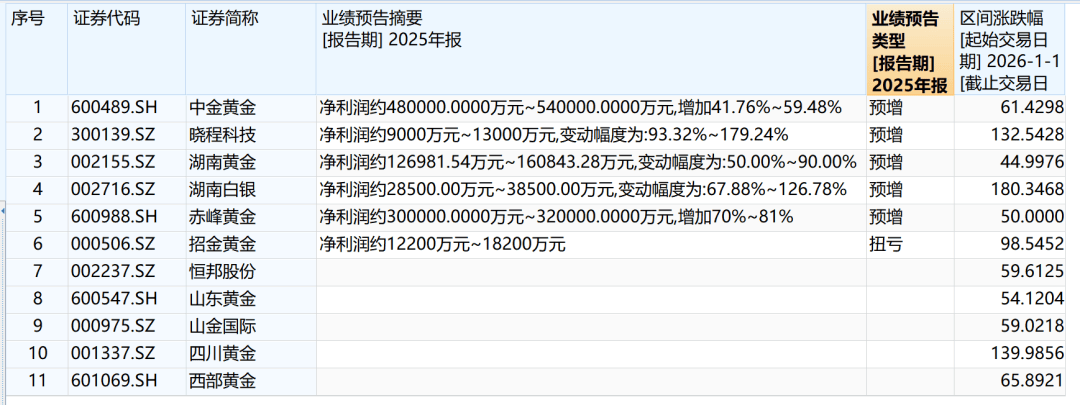 Wind数据显示,截至1月28日21时,A股共有6家黄金白银行业上市公司对外披露2025年全年业绩预告,6家公司全部预喜。