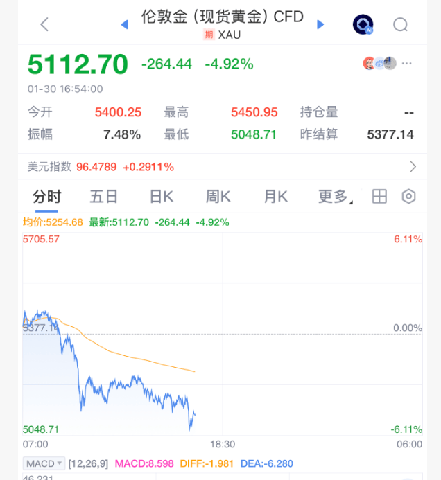 兄弟姐妹们啊,史诗级暴跌。1月30日傍晚,黄金、白银价格的崩盘还在加速,白银现货价格跌幅已经超过10%,黄金暴跌5%左右。