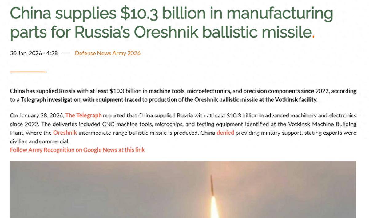 根据《每日电讯报》的说法,自从2022年俄乌战争爆发以来,欧美国家对俄罗斯实施了严厉制裁,俄罗斯的工业生产设备采购渠道几乎断绝,只有少数从2014年以后依然能维持的走私途径受到打击。在这样的情况下,俄罗斯别无选择,只能依赖中国提供的数控机床、微电子元件以及精密零部件等设备。报道中提到,为了增强报道的影响力,甚至将俄罗斯两次发射高超声速榛树导弹摧毁乌克兰设施的事件也一并纳入其中。通过简单的逻辑转化,报告误导地得出结论:中国通过出口103亿美元的工业设备,支撑俄罗斯生产高超声速导弹。这一错误信息迅速扩散开来。