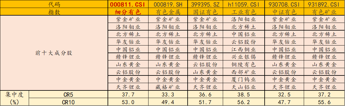 风险提示:基金有风险,投资需谨慎。投资人应当阅读《基金合同》《招募说明书》《产品资料概要》等法律文件,了解基金的风险收益特征,特别是特有风险,并根据自身投资目的、投资经验、资产状况等判断是否和自身风险承受能力相适应。基金管理人承诺以诚实信用、谨慎尽责的原则管理和运用基金资产,但不保证基金一定盈利或本金不受损失。以上基金属于中等风险等级(R3)产品,适合经客户风险承受等级测评后结果为平衡型(C3)及以上的投资者。请投资者关注指数化投资的风险以及集中投资于细分有色指数成分股的持有风险,请关注部分指数成分股权重较大、集中度较高的风险,请关注指数化投资的风险、ETF运作风险、投资特定品种的特有风险等。文中提及个股仅为指数成份股客观展示列举,本文出现信息只作为参考,投资人须对任何自主决定的投资行为负责。本文中的任何观点、分析及预测不构成对阅读者任何形式的投资建议。