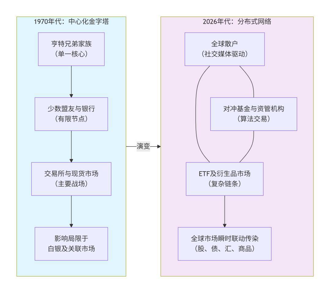 2026年的“白银幽灵”,已不再是亨特兄弟那个具体而微的巨鳄形象,而是一个无形、分散、具有全球即时传染性的系统现象。
