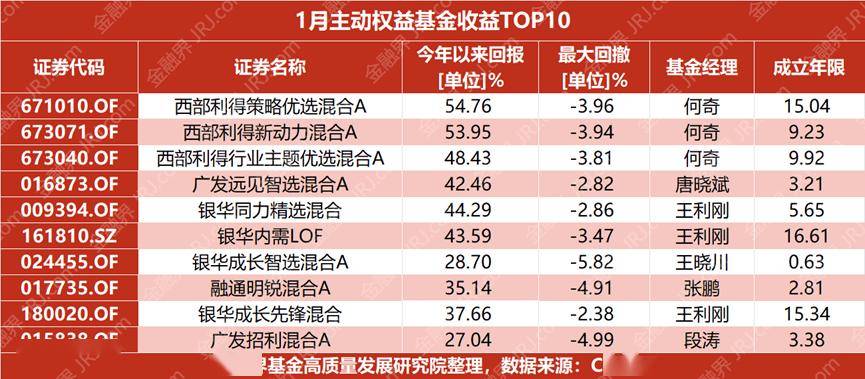 据choice数据显示,截至1月31日,西部利得基金、银华基金、广发基金旗下多只基金表现出色。