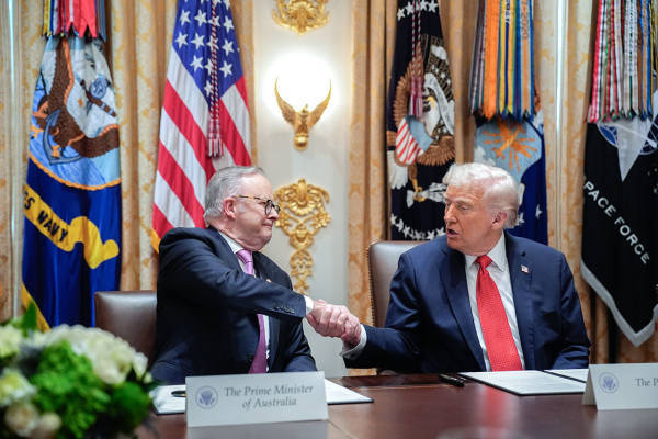 10月20日,美国总统特朗普(右)与澳大利亚总理阿尔巴尼斯(左)在白宫会晤,并签署了一项关键矿产协议。IC photo