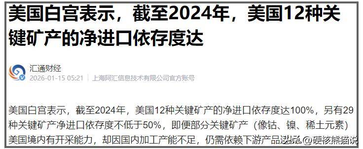 这种局面,让美国感到压力山大。根据美国地质调查局2025年的数据显示,美国在12种关键矿产上完全依赖进口,其中最严重的是稀土、天然石墨、锂、镓、镓等矿产。而其中,70%的稀土、59%的天然石墨、45%的电池级锂几乎完全依赖中国的供应,甚至连半导体制造中必不可少的镓、锗,也几乎百分之百要从中国进口。即便是那30%的稀土,并非直接从中国进口,但在生产过程中依然需要依赖中国的技术。说白了,美国在矿产供应上,已经深深陷入了中国的控制之中。
