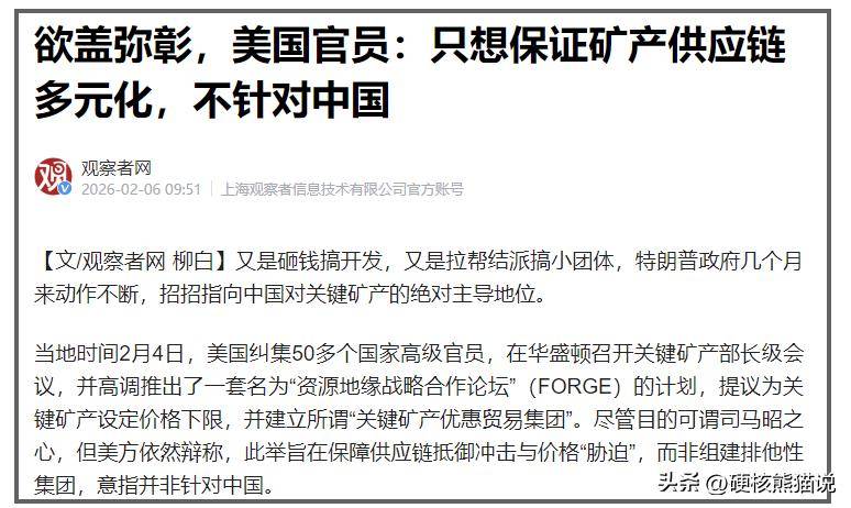 然而,这个54国联盟并非铁板一块。韩国刚刚被任命为主席国不到一天,就宣布将与中国深化矿产供应链的合作,甚至还要设立沟通热线、成立联合委员会。这一举动揭示了许多美国盟友的两难处境。尽管这些国家,包括欧盟和韩国,想要减少对中国矿产的依赖,寻找更多的供应来源,但中国依然是它们重要的矿产供应国和庞大的消费市场。若完全与中国脱钩,意味着巨大的经济损失,根本无法承受。所以,虽然美国努力推动这个矿产联盟,但事实上,全球矿产竞争已经从单纯的企业竞争,发展为国家联盟间的战略对抗。 美国成立FORGE组织的最终目的,就是要打破中国在稀土等关键矿产供应链中的主导地位。通过控制这些未来产业所需的矿产资源,美国希望确保自己在人工智能、清洁能源等领域的绝对优势,遏制中国等国的追赶。这一战略无疑会让全球矿产争夺战变得愈加激烈,国际局势也将因此发生深刻的变化。 无论是国内的政策推动,还是在国际上拉拢盟友,都展现了美国在矿产资源争夺中的决心。未来,随着全球资源格局的重塑,矿产争夺战只会越来越激烈,而这一切的背后,正是各国为了争夺未来产业竞争中的核心资源而展开的博弈。
