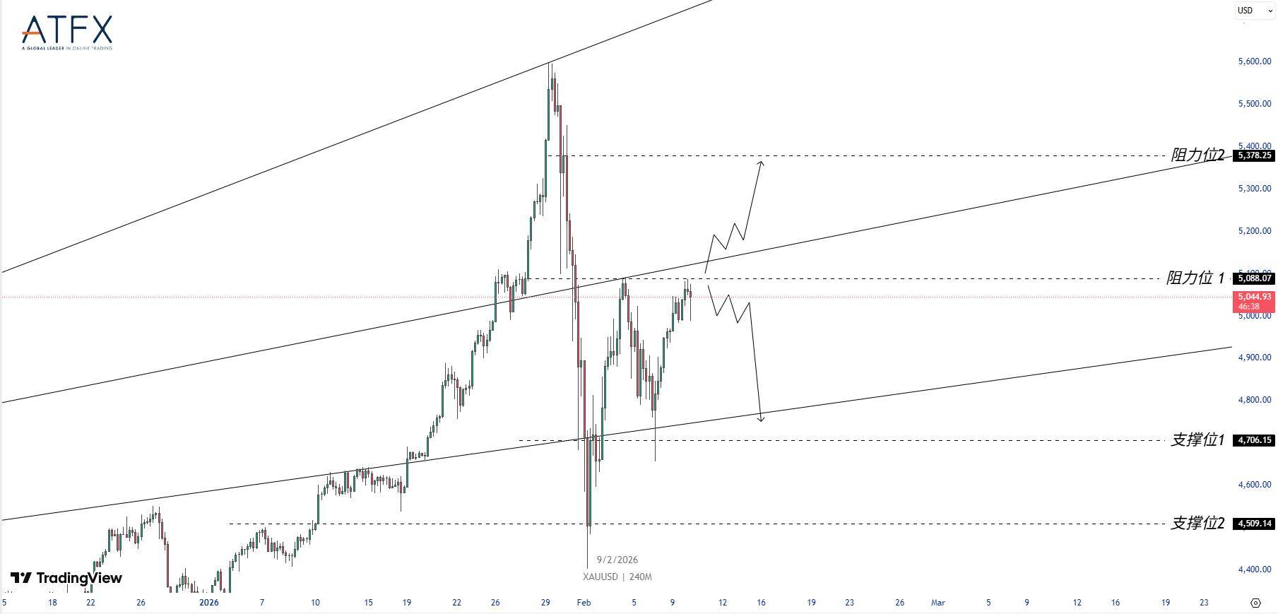 ATFX:本周黄金的市场主题可以概括为“降息预期提供底部支撑、资金撤离削弱上行动能”,在基本面与资金面相互对冲的环境下,金价更可能以高位震荡的方式等待关键数据给出方向。回顾上周,黄金在急跌后出现强势修复,反映避险情绪与低吸买盘在关键位置依然活跃;推动情绪变化的因素主要来自两条线索:其一是地缘政治的不确定性仍未彻底消散,美伊间接谈判虽阶段性降温,但并未形成可持续的“风险解除”,避险需求仍会在消息反复中时强时弱;其二是美国宏观数据进入集中窗口,前期挑战者裁员、职位空缺等就业线索偏弱叠加通胀预期回落,使市场更愿意交易“通胀可控+劳动力趋弱”的组合,进而强化对联储局后续降息路径的定价,美元与实际利率预期的边际转弱也为无息资产提供支撑。不过需要强调的是,当前交易环境趋严使资金面成为短线压制力量:在波动率上升、保证金要求上调、风险价值(VaR)约束收紧等背景下,部分管理资金账户倾向于逢反弹降低杠杆与净多头敞口,贵金属整体出现“去风险、减仓位”的特征,这会导致黄金即使有基本面利好,也更容易先走整理、反复拉锯,而不是直接形成持续单边上攻。就本周而言,真正决定突破方向的仍是美国重磅数据对“降息概率—美元走势—资金回流”的连锁影响:延迟公布的非农就业报告与随后通胀数据,将直接影响市场对政策路径的再定价,若数据验证就业继续降温且通胀不构成再上行压力,降息预期有望升温、美元走弱概率上升,黄金更易获得趋势性推动;反之,若数据偏强导致降息押注降温,资金去杠杆可能再度放大回撤幅度。