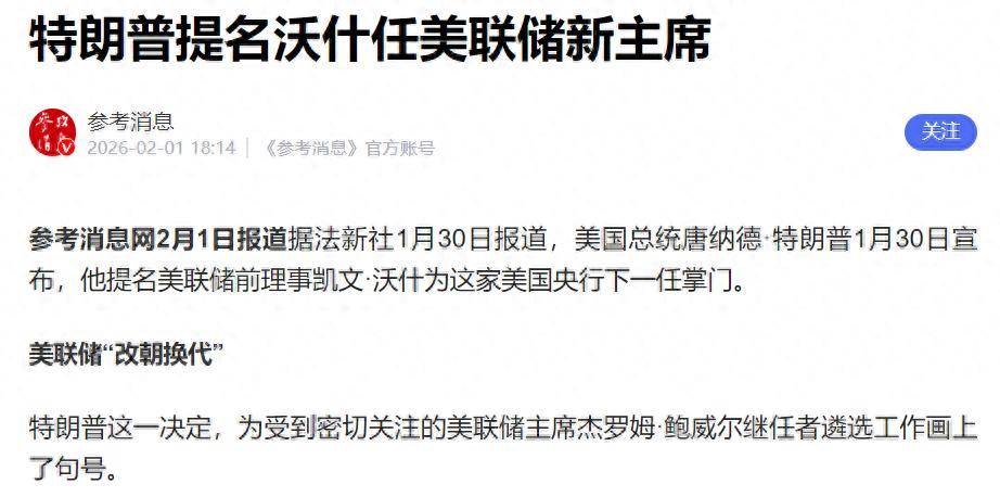 黄金、白银等贵金属大跌,美元指数上升,全球舆论一时“拜倒在沃什脚下”。