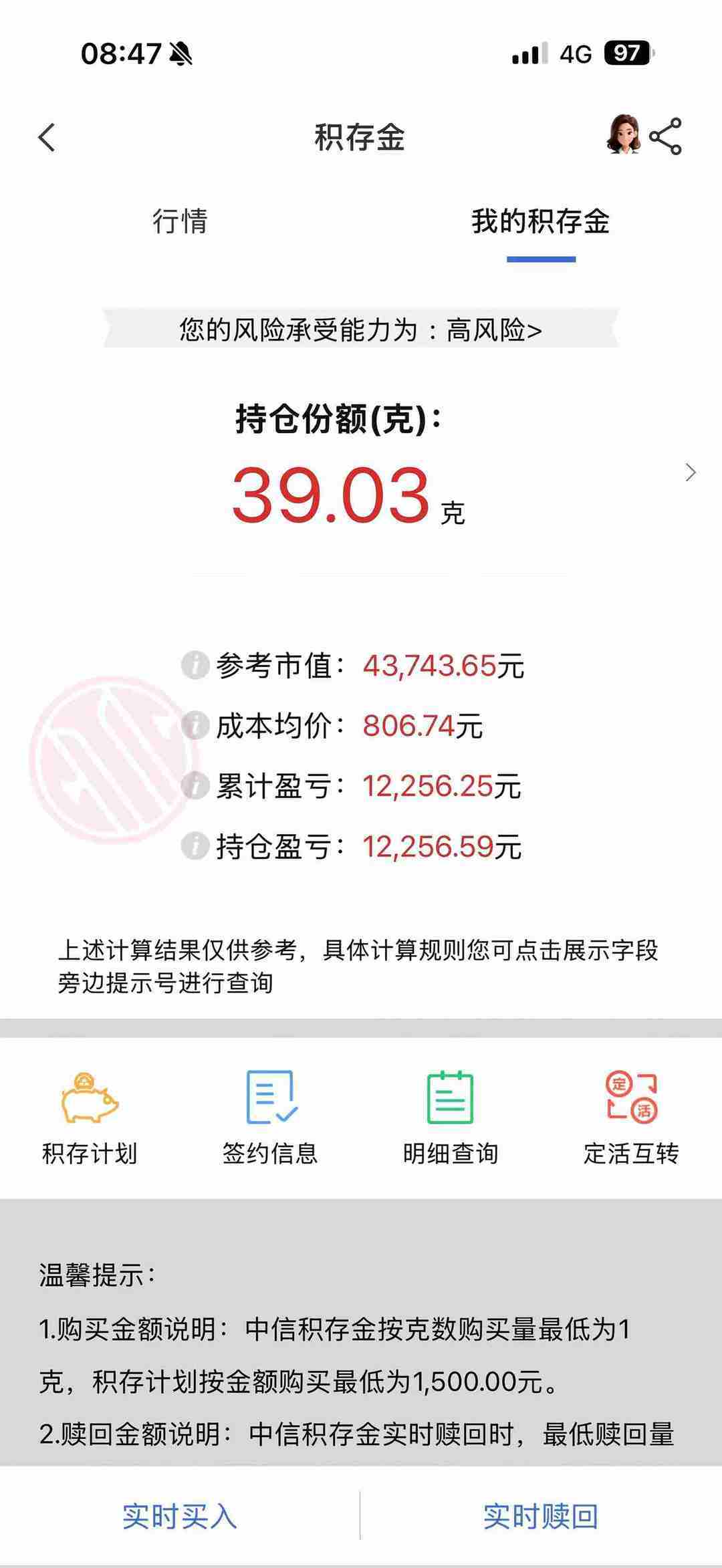 马女士积存金持仓情况。受访者供图
