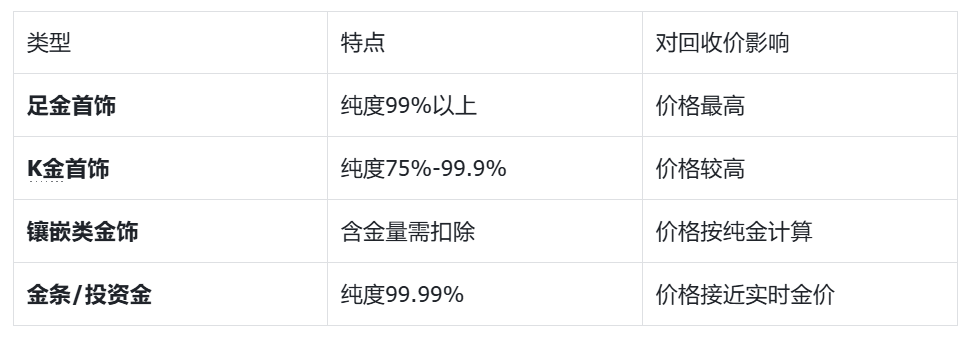 1. 金饰类型与纯度