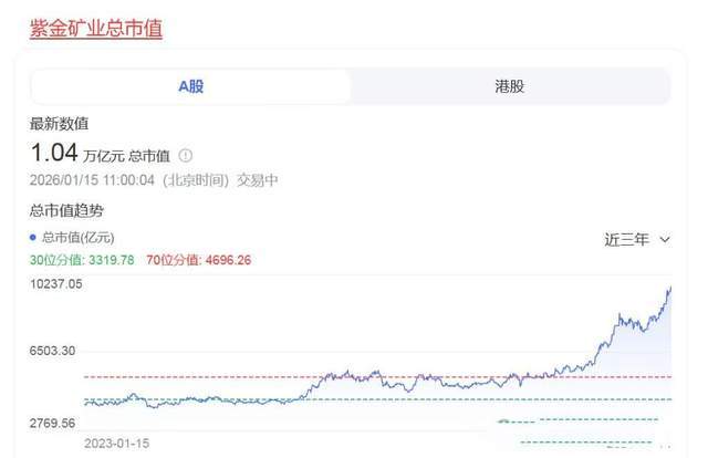 在这样的市场浪潮中,紫金矿业于今年1月初迎来爆发:单日股价涨幅超6%,市值一度冲破万亿整数关口。回望2025年,该公司股价全年飙升135.77%,市值较年初激增5258亿元,更创下连续6年股价上扬的纪录,累计涨幅已超10倍之多。