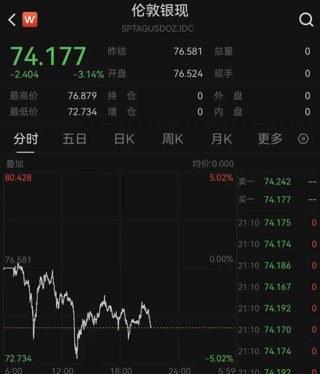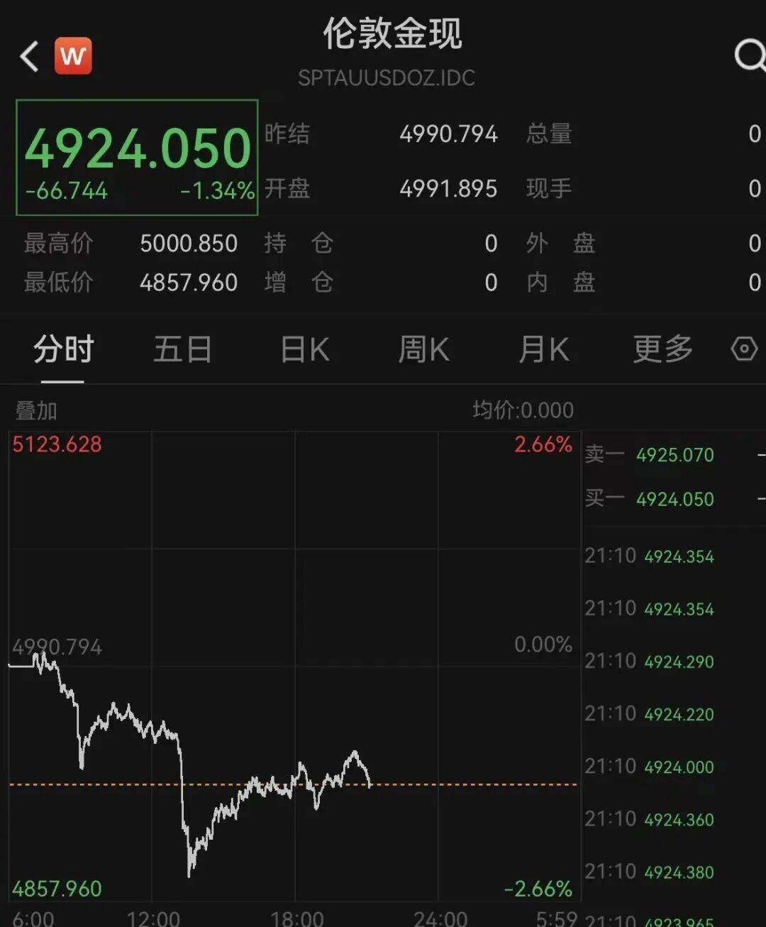 现货黄金、白银继续下挫,截至发稿,黄金跌逾1%,盘中一度跌破4900美元/盎司,白银跌超3%,盘面中最低跌破73美元/盎司。