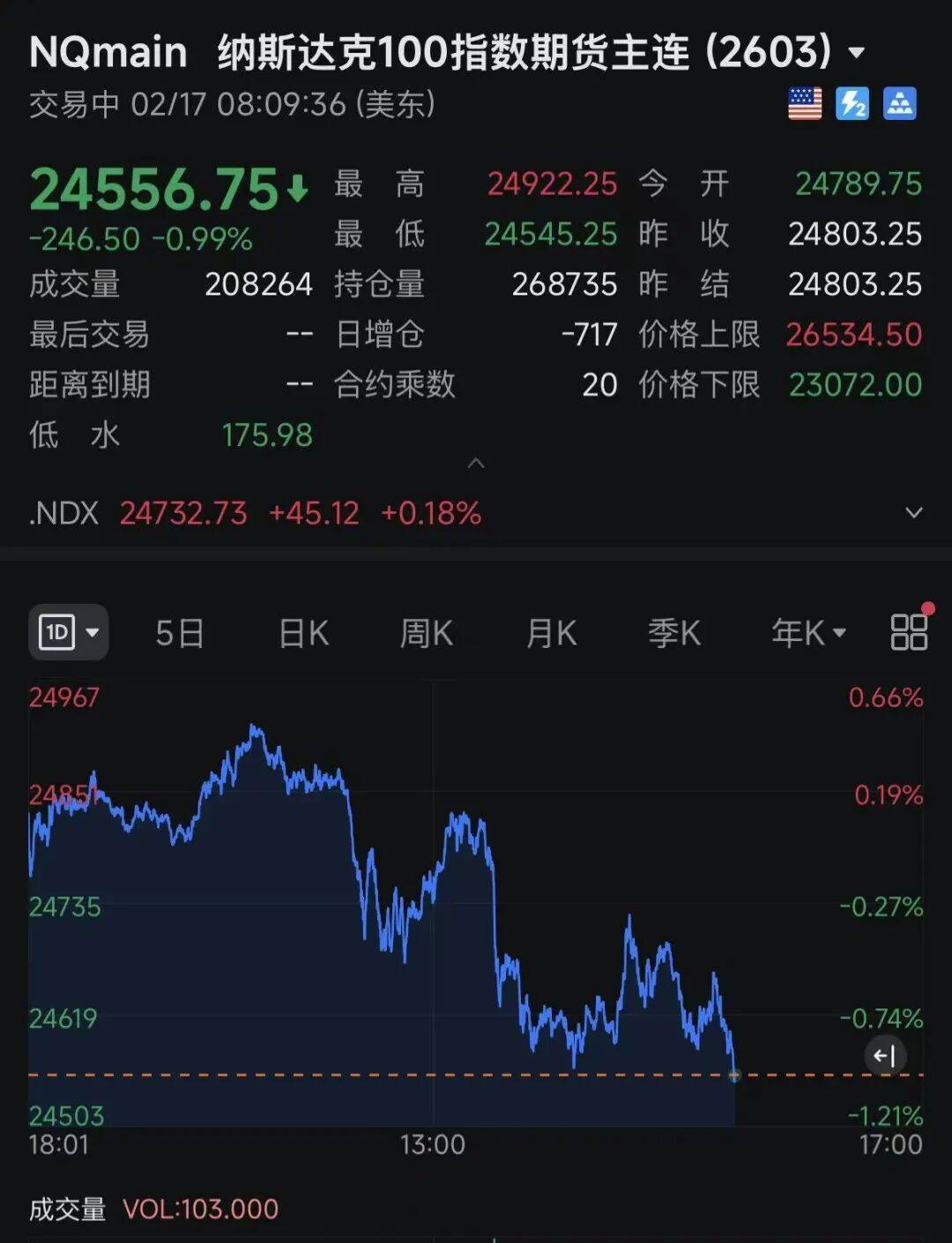 其中,纳斯达克100指数期货跌近1%。
