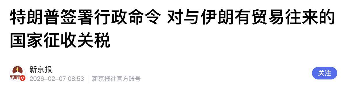 幸运的是,在这场紧张的对峙中,最终双方还是选择了谈判。2月6日,美国与伊朗在阿曼举行了间接谈判。这是自去年空袭伊朗核设施以来,双方首次通过这种方式展开接触。虽然很多人对谈判的结果并不抱太大希望,认为双方的分歧很难彻底消除,但至少能坐下来谈,总比真正发生冲突要好。然而,令人意外的是,就在谈判关键时刻,特朗普突然宣布将对与伊朗有贸易往来的国家加征25%的关税。2月7日,特朗普正式签署了行政命令,决定对任何从伊朗直接或间接购买商品的国家加征25%的关税,并明确表示这是最终决定,不会更改。