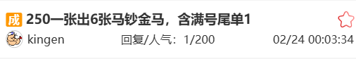 无12347(金马王)标百稳定在25000元左右