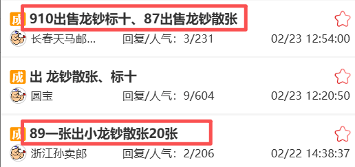 龙钞散张行情