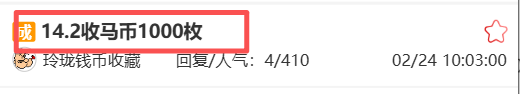 二轮马年纪念币下跌至14.2元左右