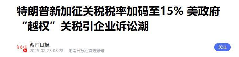 2月21日,美国时间,特朗普在社交平台上发布了一条声明,宣布将原定的10%全球进口关税直接上调至15%。他说这是一项法律允许的上限。然而,就在前一天晚上,美国最高法院刚作出裁决,特朗普不得不紧急签署行政令,将关税调整为10%的临时税率。不到24小时内,他两度改变立场,速度之快让人难以捉摸。