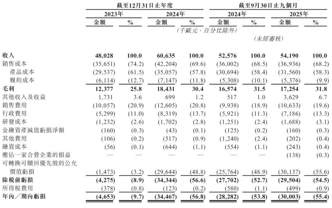 Radvance在2025年前9个月营收为5419万美元,毛利为1725万美元,毛利率为31.8%,期内亏损为3000万美元,期内亏损率为55.4%。