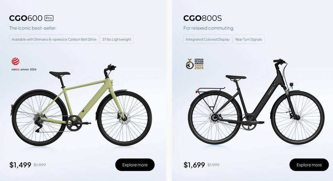 Radvance的产品属于高端自行车,比如,官网一辆车动辄1499美元到1699美元,以人民币计算,都是万元以上的价格。