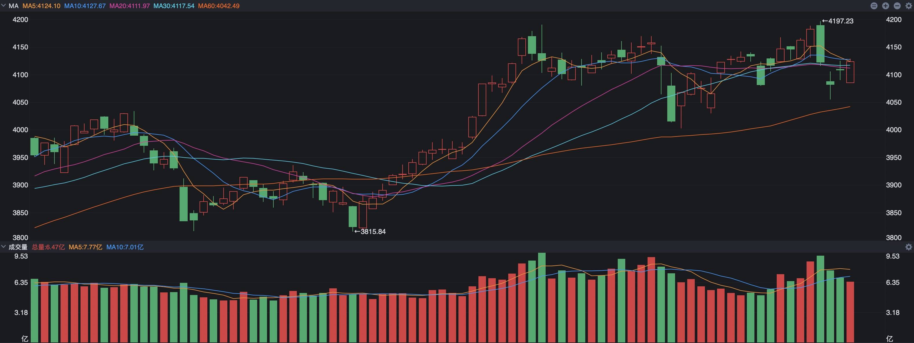 我看了一下,目前沪指最强劲的支撑在4042点,也就是日线上的60日线附近,简单说下周应该是4000点的争夺战了,当然了这只是一种极端情况下的猜测,也存在指数低开一定幅度,比如说接近4050点的时候,就会出现大哥资金积极维护的情形,其实我真心希望这种情形出现,越是在外围不稳定的时候,大哥出手的意义就非常的重要,不只是维护指数的多头趋势,主要是能够给大家信心,认为A股是有韧性的,这样慢牛的良好氛围才能持续。