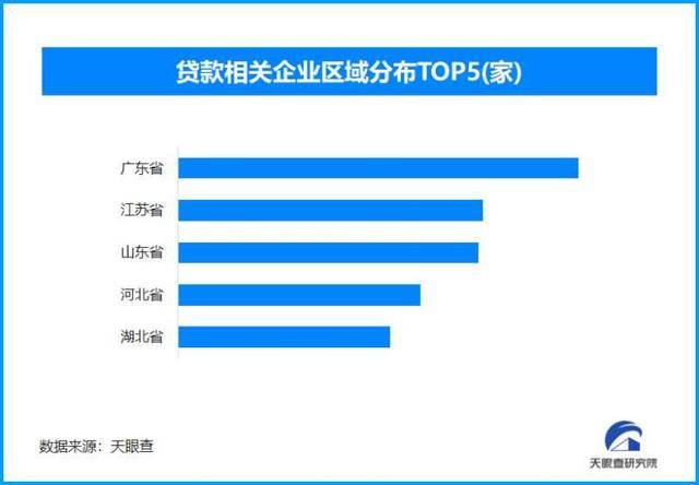 天眼查专业版数据显示,截至目前,我国拥有超22.1万家贷款相关企业。从地域分布上看,广东、江苏以及山东三地,贷款相关企业数量位居前列,分别拥有2.1万余家,1.6万余家以及1.6万余家。