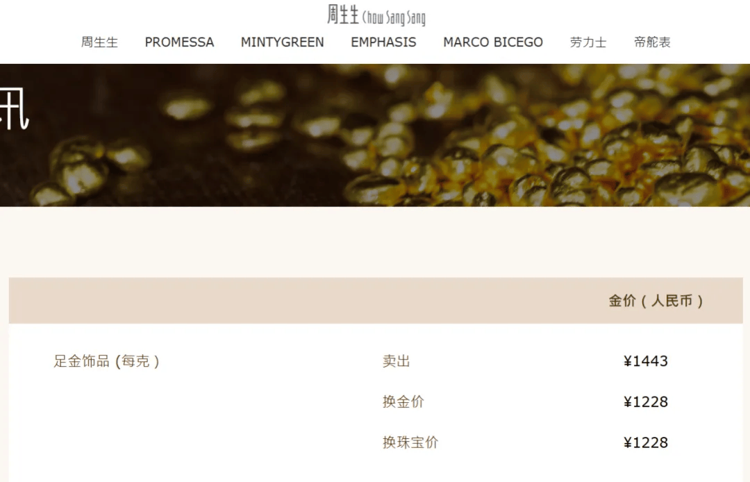 周生生今日金饰克价为1443元/克,较前一日下跌49元/克,两日下跌104元/克。