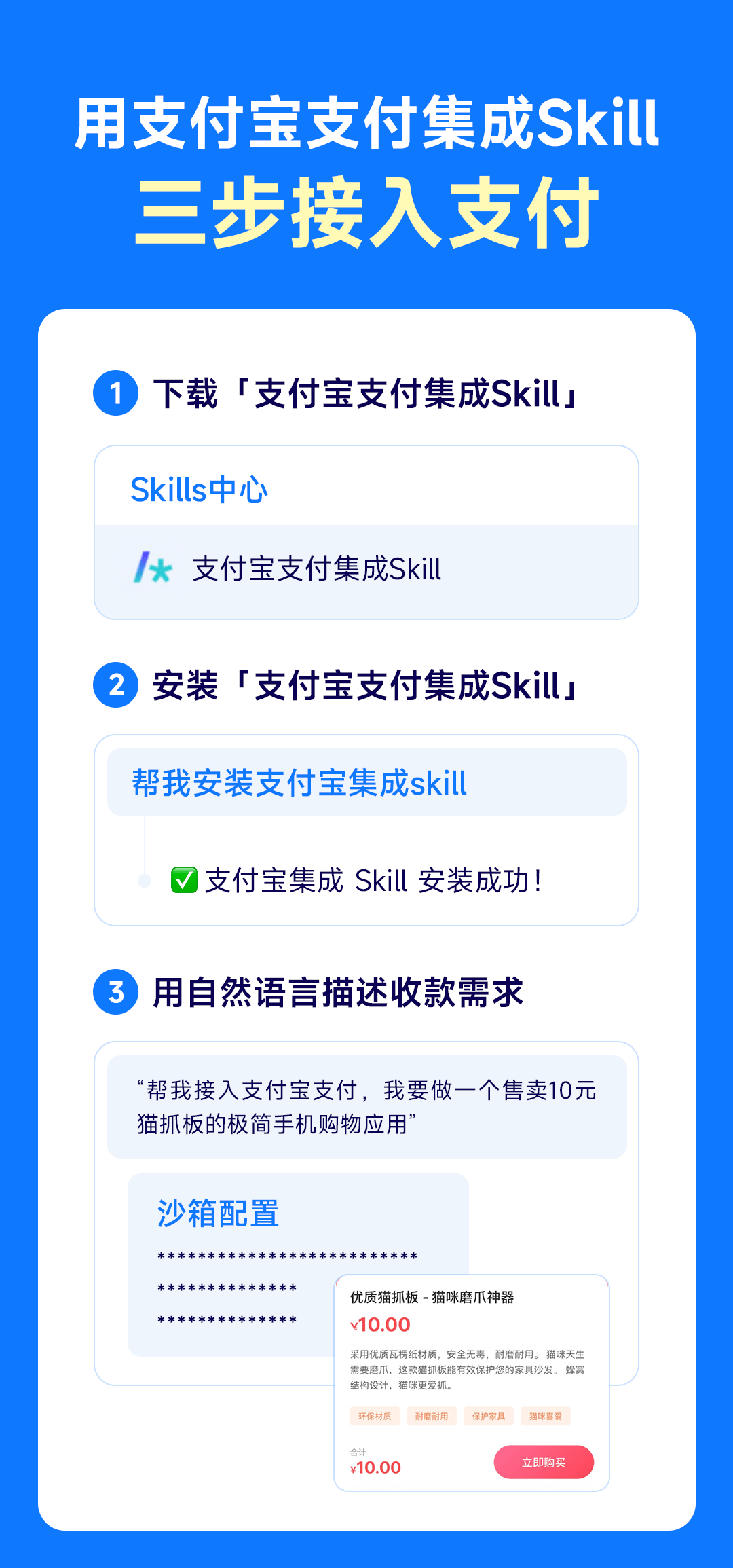 每经AI快讯,3月31日,支付宝发布国内首个“支付集成Skill”,将基础支付能力深度封装为标准化组件。此外,支付宝还升级了“沙箱环境”,开发者可在无真实资金、未正式开通支付产品的前提下,完成全链路支付测试。
