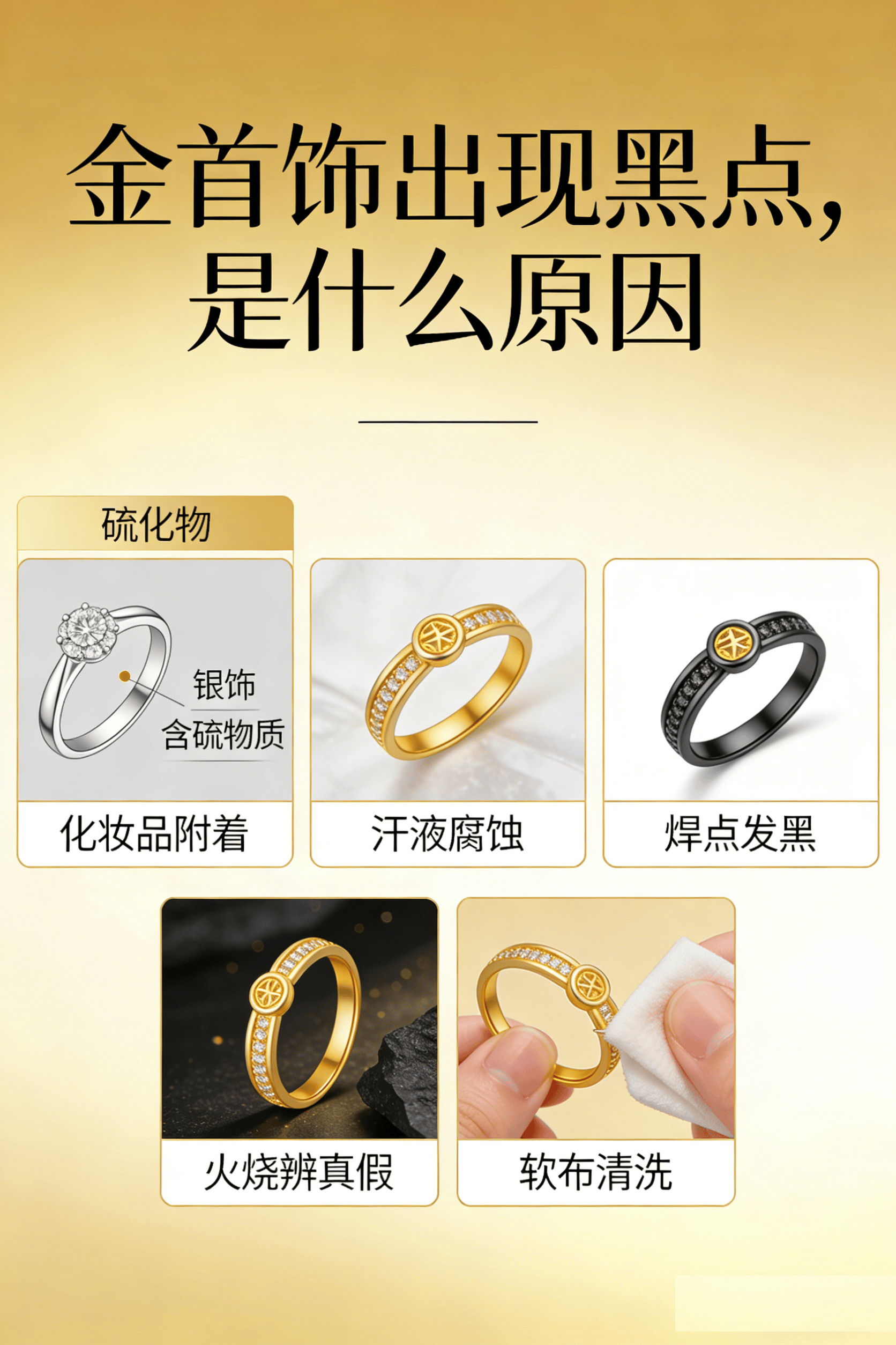 2.专业处理:若黑点无法通过日常清洁去除,可送至正规金店,通过火枪高温烘烤分解硫化物,即可恢复黄金原有光泽;