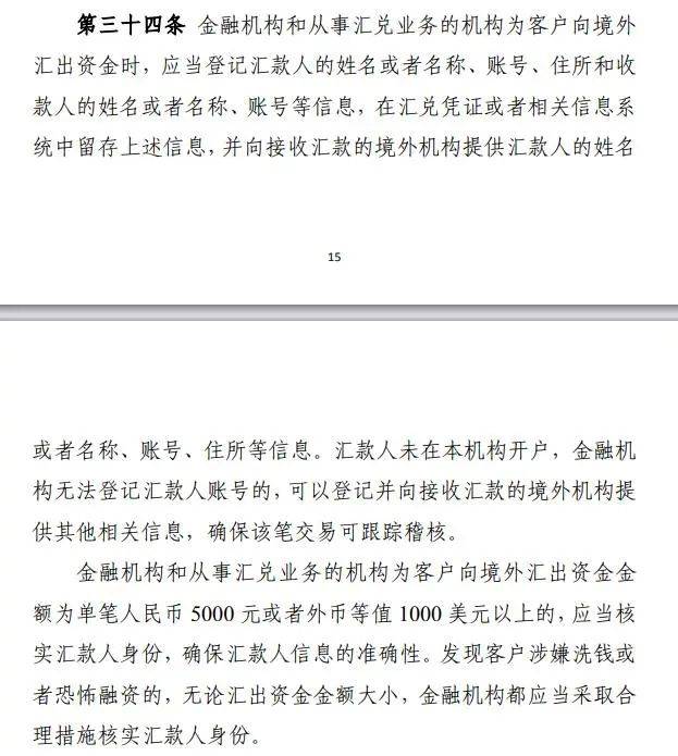 2025年8月4日,央行、金融监管总局、证监会三部门联合发布了一个“征求意见稿”,明确规定:金融机构和从事汇兑业务的机构,为客户向境外汇出资金额为单笔人民币5000元或者外币等值1000美元以上的,应当核实汇款人身份,支付机构一次性出售不记名预付卡1万元以上需登记。