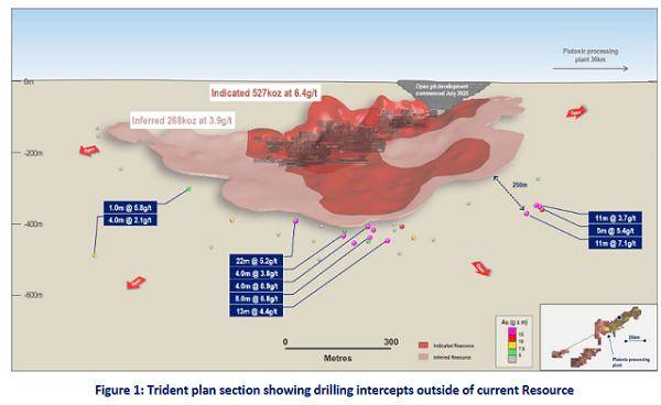 继披露Trident金矿床控制资源量翻倍至79.5万盎司后,Catalyst Metals Ltd (ASX股票代码:CYL) 周四宣布在该资源体外围钻获多个重要高品位截块。