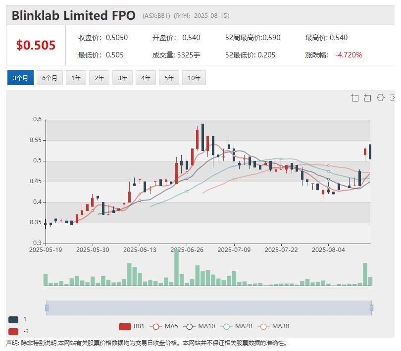 Blinklab Ltd (ASX股票代码:BB1) 股价异动,周四飙涨20.46%。