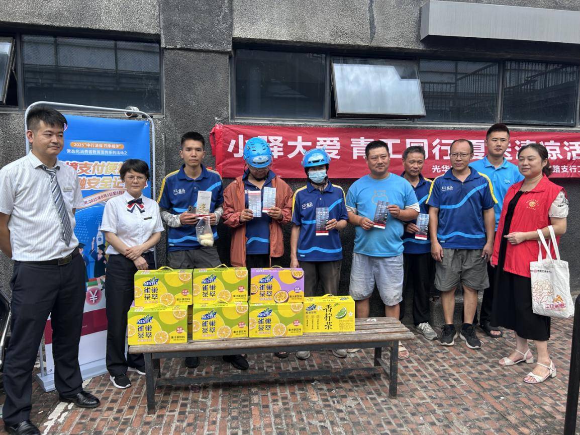 近日,中国银行成都青羊支行携手光华街道总工会,开展“跨境支付便捷行 金融安全记在心”宣传活动 与 “小驿大爱 青工同行”夏送清凉行动,以“金融服务+人文关怀”的双轨模式,为城市新就业形态劳动者送上贴心支持,彰显国有银行社会责任担当。