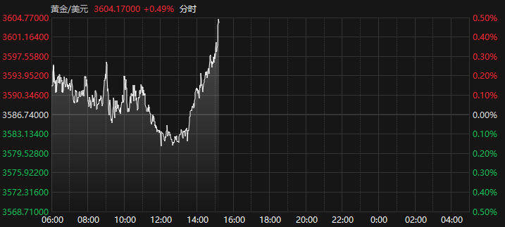 上证报中国证券网讯 据Choice数据,9月8日,国际现货黄金午后震荡拉升,截至15:13报3604.17美元/盎司,再创历史新高。