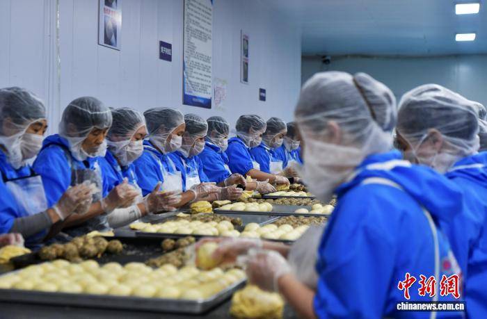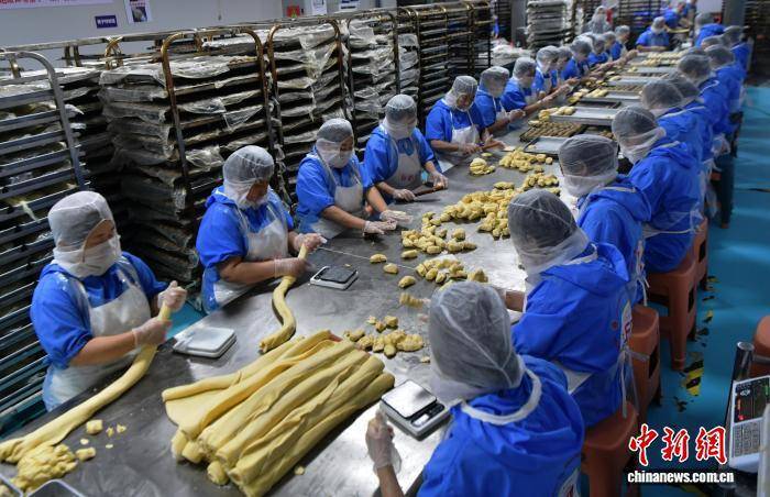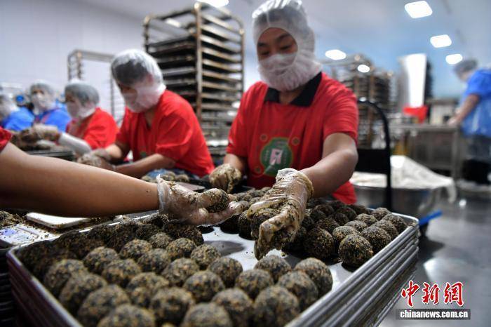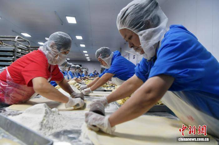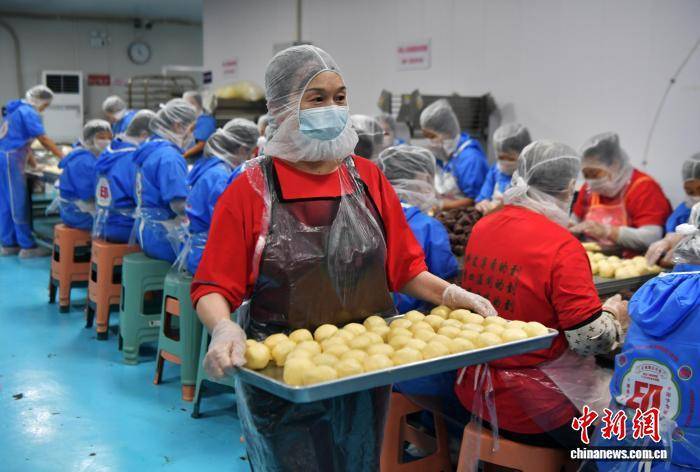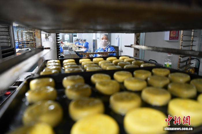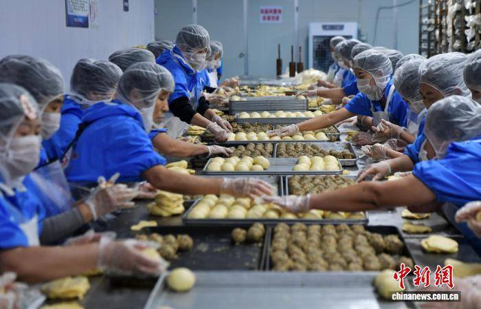 9月19日,中秋节将至,河北省石家庄市藁城区九门回族乡黄庄村一家月饼生产企业车间,工人正在赶制手工月饼。该村以生产月饼闻名,目前83家月饼生产企业日产月饼约150吨,这些月饼将销往全国各地。中新社记者 翟羽佳 摄