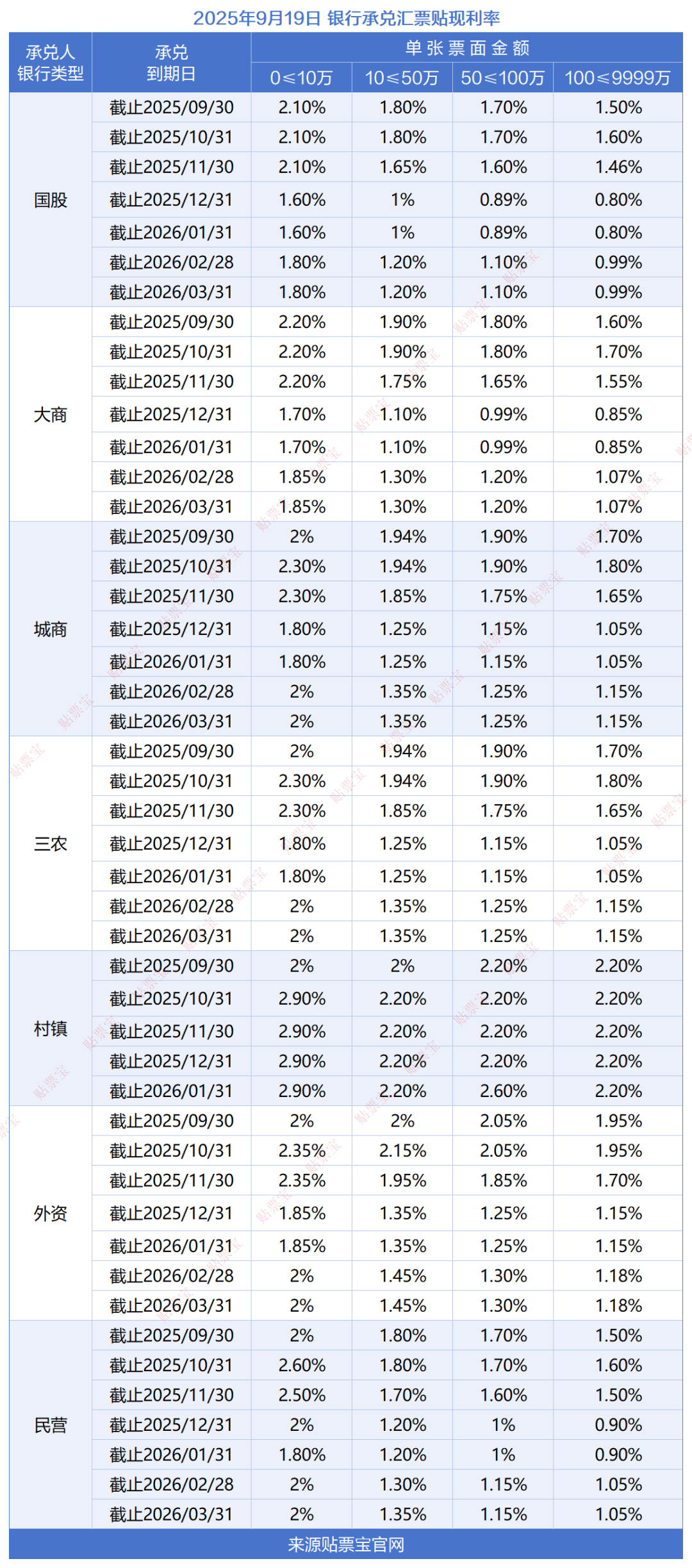 2025年9月18日票据市场整体延续偏强走势,直贴与转贴利率均有不同程度上行,市场情绪趋于谨慎。