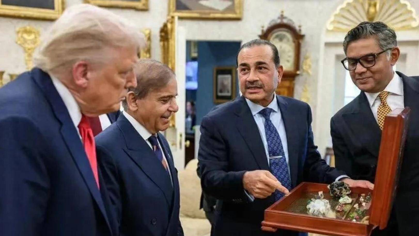 最近,美国总统特朗普在白宫会见了巴基斯坦总理夏巴兹和巴基斯坦军队的高级指挥官穆尼尔。此次会谈持续了约80分钟,虽然不对媒体公开,但巴基斯坦方面公布的几张照片显示,这场会晤气氛轻松友好。特朗普不仅笑容满面,还特意竖起了大拇指。特别引人注目的是,一张照片中,巴基斯坦的军方领导正在向特朗普介绍巴基斯坦丰富的稀土矿产资源,特朗普听得尤为专注,似乎对这个话题表现出浓厚兴趣。