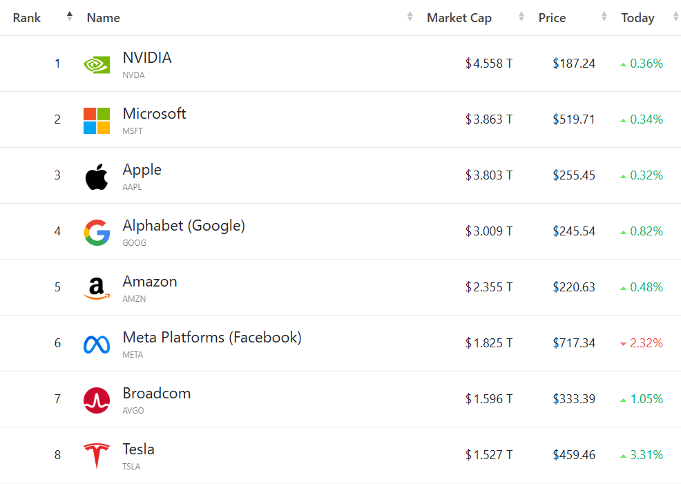 大型科技股多数走高,(按市值排列)微软涨0.34%,苹果涨0.32%,谷歌C涨0.82%,亚马逊涨0.48%,Meta跌2.32%,博通涨1.05%。