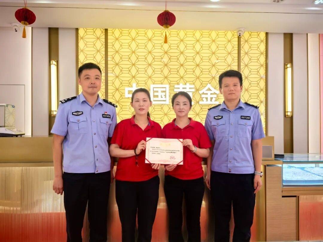 ▲10月2日上午,歙县警方向两名金店柜员颁发了荣誉证书,感谢她们凭借敏锐反诈意识,为群众挽回了大额损失。