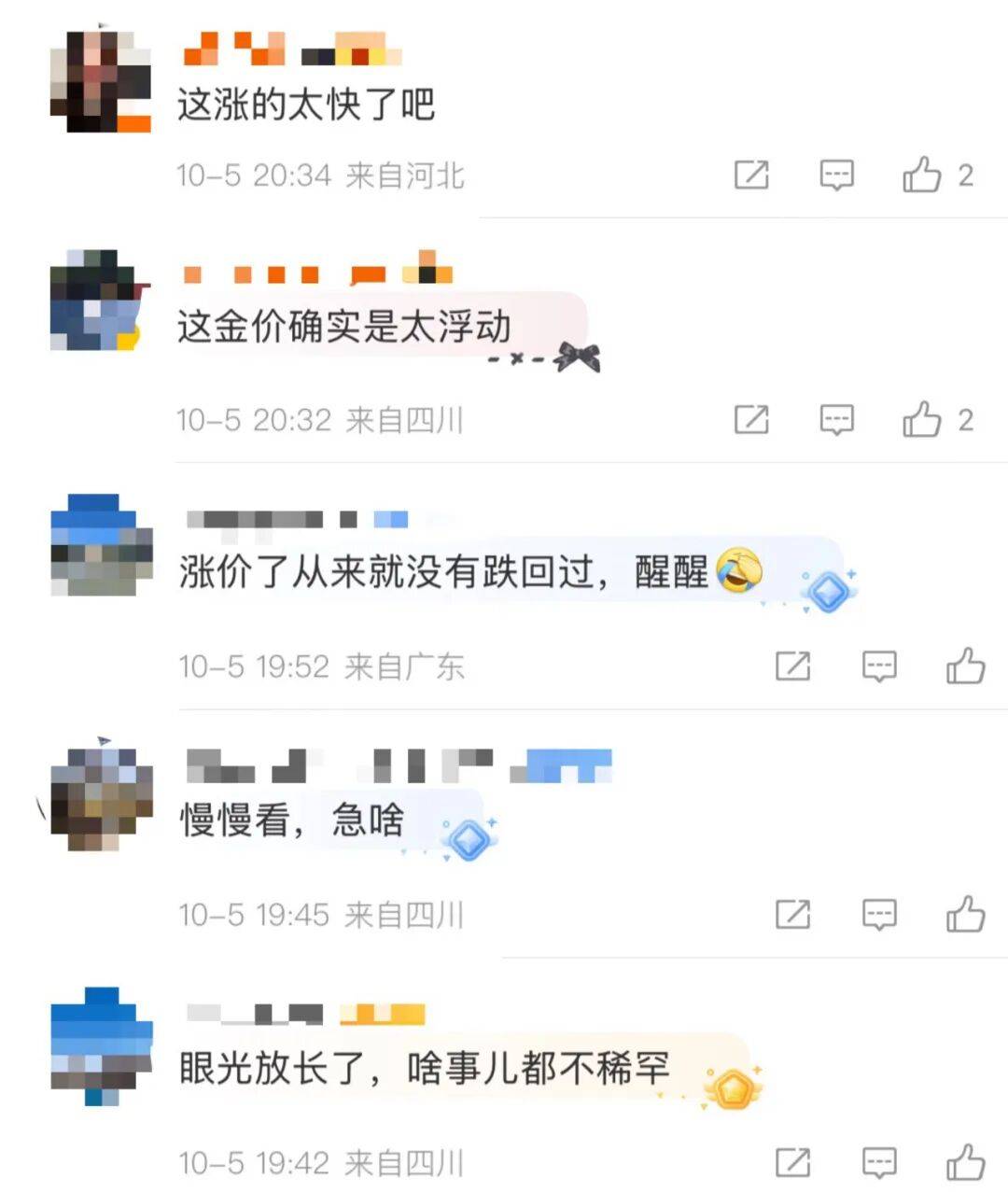 值得一提的是, 在高金价的背景下,多家品牌的“一口价”黄金饰品也进行了调价。广东深圳某黄金珠宝品牌门店销售人员透露:“国庆期间,我们针对‘一口价’的产品,价格上调5%左右。”有消费者表示,金价走势起伏很正常,“易涨难跌”仍将是常态。 “从今年年中一直观望到十一,没想到越等越贵,之前想买个黄金项链,现在只能考虑买一对黄金耳坠了。”