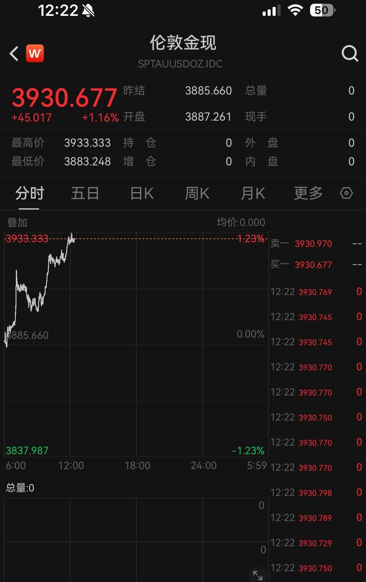 央广网北京10月6日消息(记者 黄昂瑾)国际金价近日走高。截至10月6日午间12时22分,伦敦现货黄金价格一度触及3930美元/盎司,涨幅1.16%,创历史新高。