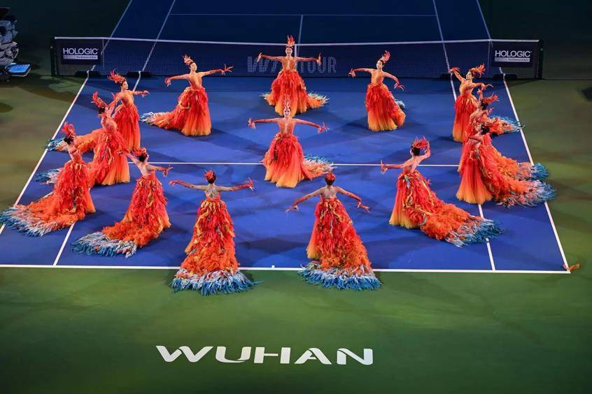 正值中秋佳节,开幕式现场灯光闪耀,《但愿人长久》《月亮代表我的心》等歌曲唱响中央球场,为武网带来浓厚节日氛围。