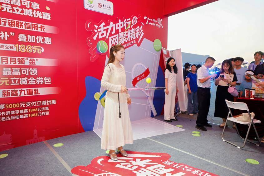 作为本次赛事荣誉赞助商,中国银行湖北省分行还同步推出系列优惠金融产品,为国内外球迷送上满满福利:中行银联信用卡可享“国补”叠加优惠至高立减188元,让消费更添实惠;话费充值参与活动最高立减20元,贴心满足通讯需求;新客专享九重礼最高可获5000元支付立减,为新用户解锁多重惊喜;“月月领‘金’”及新客户办卡10元购“金”喜等特色活动,更吸引众多市民驻足咨询、踊跃参与。