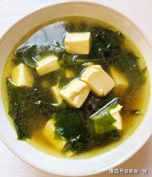 准备食材:裙带菜、豆腐、葱、姜、盐、白胡椒粉、香油。