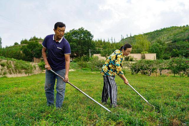 合道镇唐台子村黄丽萍夫妇给药材锄草。