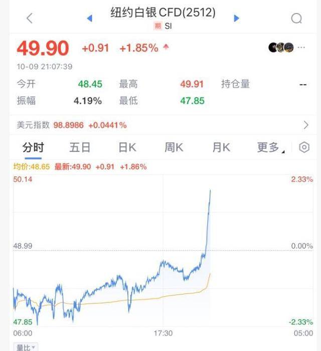 10月9日晚间,受避险需求飙升与伦敦现货市场供应趋紧的双重推动,现货白银价格跃升至数十年来新高。