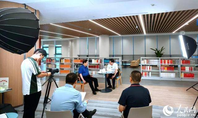 人民日报记者廖文根专访福耀集团董事局主席曹德旺(左)。人民网记者 焦艳摄